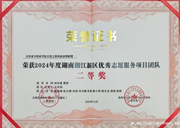 近日,共青团湖南湘江新区(岳麓区)委员会、湖南湘江新区大学生志愿服务联合会公布了2024年湖南湘江新区优秀青年志愿者、优秀青年志愿服务项目团队名单。新利luck18(中国)体育5名学生、8个项目上榜,其中“自然之翼残枝清理联盟”项目荣获二等奖。